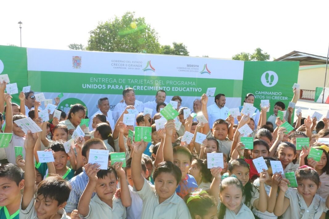 “Un gobierno que hoy siembra seguridad y desarrollo humano, cosechará mañana un mejor Campeche”, señaló el secretario de Desarrollo Social Y Humano (SEDESYH) Jorge Chanona Echeverría, al poner en marcha, en representación del gobernador del Estado Alejandro Moreno Cárdenas, la entrega de tarjetas del programa “Unidos para el Crecimiento Educativo” en su vertiente “Caminando Juntos para Crecer”, que beneficiará a 44 mil 566 niños de 575 escuelas primarias rurales, de 506 localidades de la entidad, con una inversión global de ocho millones 913 mil 200 pesos.