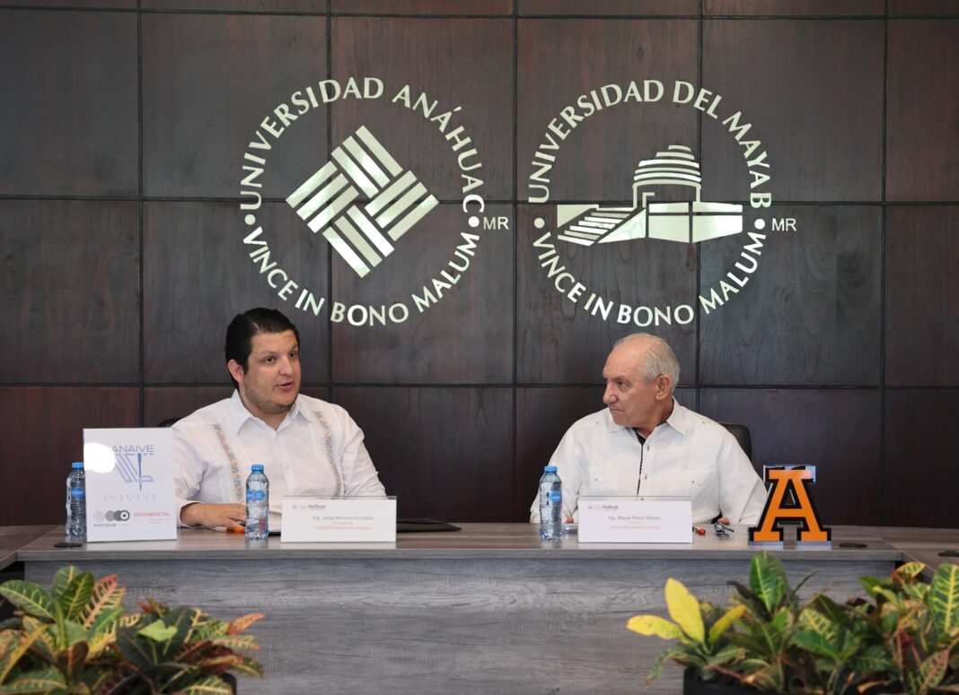 El presidente de la Canaive, Jorge Moreno González y el rector de la universidad Anáhuac Mayab, Miguel Pérez Gómez firmaron el acuerdo que será de gran apoyo a más de 500 alumnos de esa universidad de las ingenierías y licenciaturas de diseño, incluyendo el de modas, ya que podrán utilizar los laboratorios de fotografía, el indumental y Photolab para sus creaciones.