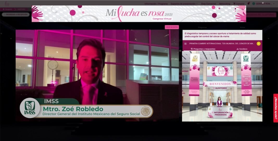 Al inaugurar la 1ª Cumbre Internacional “Mi Lucha es Rosa 2021”, organizada por Fundación IMSS y que se realiza de manera virtual el 21 y 22 de octubre en la página http://fimssrosa2021.mx/, destacó que este congreso es una muestra de humanismo, fraternidad y corresponsabilidad en la lucha contra esta enfermedad, primera causa de muerte por cáncer en mujeres de 25 años o más.