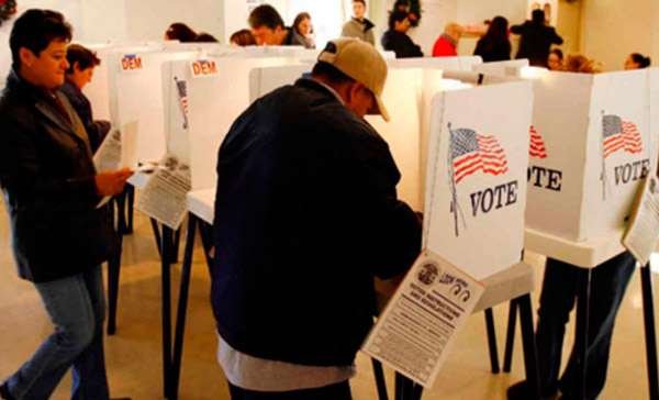 Kioscos de los partidos Republicano y Demócrata se instalaron allí con la misión de reclutar apoyos para esta elección en la que el tema migratorio ha sido una destacada polémica en la agenda.