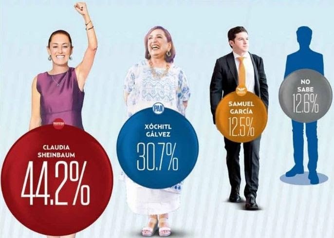 La intención del voto registrada en este estudio de opinión reveló que la exmandataria capitalina se quedaría con el 44.2 por ciento de los sufragios en la elección. Esto significa que de cada 10 personas, al menos cuatro apoyarían a la mujer a la que el presidente López Obrador le entregó el bastón de mando hace unos días.