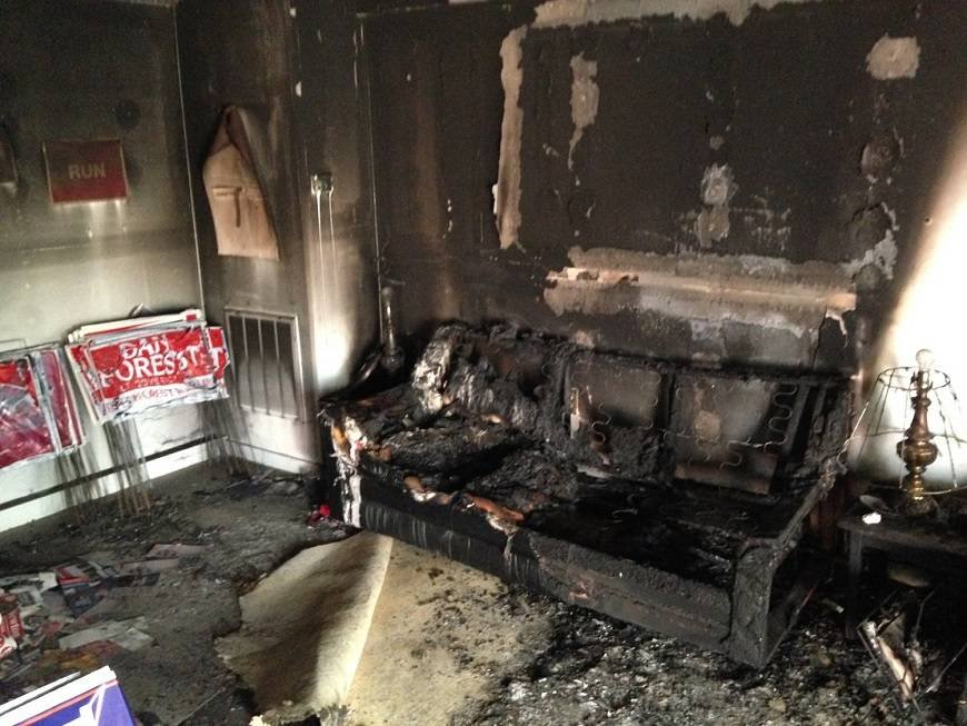 El lanzamiento de una botella con líquido inflamable a través de una ventana de la oficina republicana en el condado predominantemente demócrata de Orange (Carolina del Norte) quemó muebles, materiales y carteles de campaña, aunque no provocó heridos, según la Policía local.