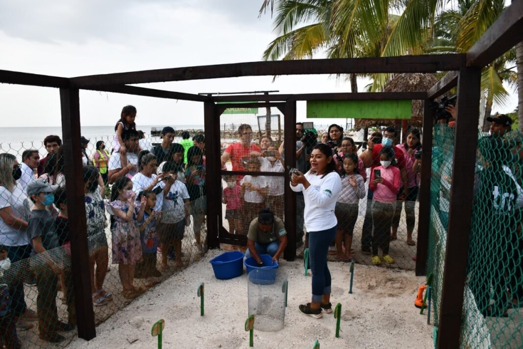 La Administración Portuaria Integral de Campeche (APICAM) y el Grupo Ambiental Profauna, realizaron la primera liberación del primer nido con 137 crías en el Campamento Tortuguero del Balneario Inclusivo Playa Bonita.