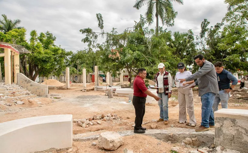 La Presidenta Municipal de Felipe Carrillo Puerto, Mary Hernández, realizó una supervisión de los trabajos de modernización del parque público ubicado en la alcaldía de Señor, proyecto que busca ofrecer espacios recreativos, de descanso y confort para la comunidad.