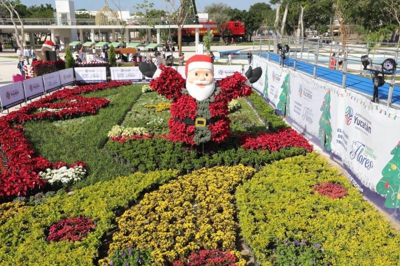 En Mérida, en la Explanada cívica del Parque de La Plancha, considerado el mejor de México, la gente pudo observar un tapete vegetal con figuras como los Reyes Magos, un nacimiento, así como esculturas vegetales que incluyeron una piñata, osos polares y el personaje principal de la Navidad, Santa Claus.