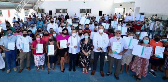 Asimismo, el gobernador entregó títulos de propiedad y certificados a las familias cozumeleñas para garantizar a los habitantes de la isla seguridad patrimonial y certeza jurídica en la posesión de sus propiedades.