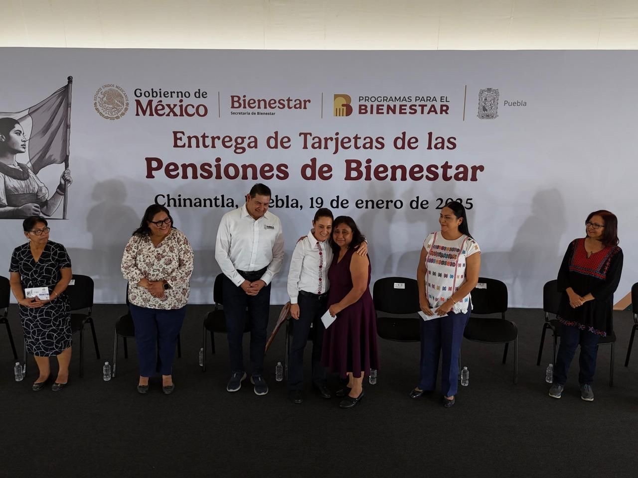 - En Chinantla, encabezó la entrega de 175 tarjetas del Banco del Bienestar a beneficiarias de la Pensión Mujeres Bienestar, apoyo que en todo el estado de Puebla se otorgará a 45 mil 818 mujeres de 63 y 64 años; así como de 270 tarjetas para la Pensión para el Bienestar de las Personas Adultas Mayores que a nivel estatal será entregado en 2025 a 32 mil 360 personas de 65 años y más