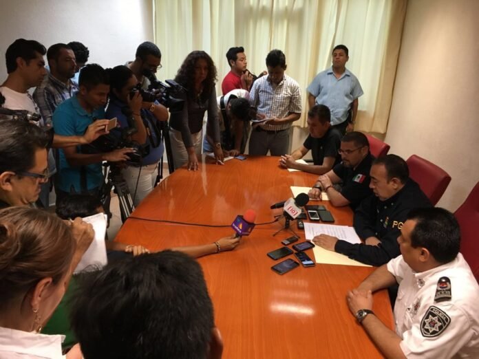 El primer abogado del Estado, en compañía del Subprocurador de Justicia, Ludwig Vivas Arjona; del director de la Policía Judicial en la Zona Norte, Marco Antonio Sánchez Sánchez; y del secretario de Seguridad Pública en Benito Juárez, Jaime Ortiz Ongay ofreció detalles sobre la captura.
