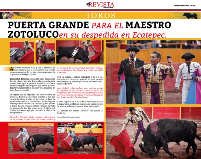Se superó con su segundo, un toro cárdeno de preciosas hechuras que tenía muchas teclas que tocarle, Zotoluco le piso los terrenos y a base de aguantarlo mucho, el toro temimo por entregarse ante la poderosa muleta de Zotoluco quien remató la faena de una estocada entera y el juez no dudo en concederle las dos orejas ante el júbilo del público que se entregó por completo al diestro de Azcapotzalco.