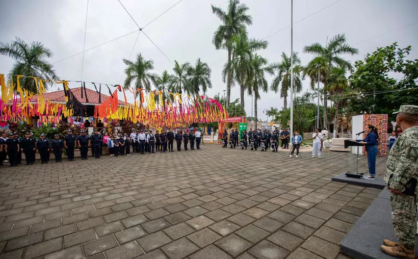 La actividad dio inicio con un homenaje cívico en el parque central “Parque Ignacio Zaragoza”, donde se rindieron honores a la bandera y se realizó el pase de revista para verificar que los elementos de la corporación de seguridad pública, tránsito y bomberos estuvieran debidamente uniformados, equipados y preparados para sus funciones.