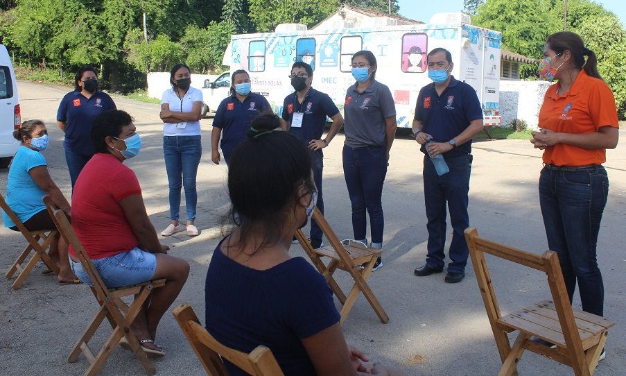 Santiago Ramírez informó que esta semana correspondió a las mujeres de la comunidad de Cayal acercarles las acciones de asesoría jurídica y psicológica, pláticas de prevención de la violencia, servicios médicos preventivos como exploración de mamas, ultrasonidos pélvicos y obstétricos, así como tamizaje cervicouterino; mientras que del 3 al 5 del presente mes, se visitará la comunidad de Tikinmul y el próximo viernes 6 se tendrá presencia en la localidad de Castamay.