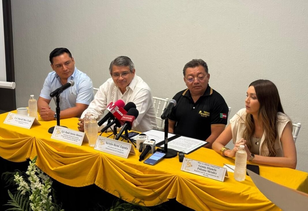 En la rueda de prensa estuvieron, además de Sergio René Zapata, David Mex Tzab, asesor externo de Pamplona; Raúl Arceo Alonzo, secretario técnico de Gestión Integral de Residuos Municipales del Ayuntamiento de Mérida; y la regidora, Genny Palomo Méndez.