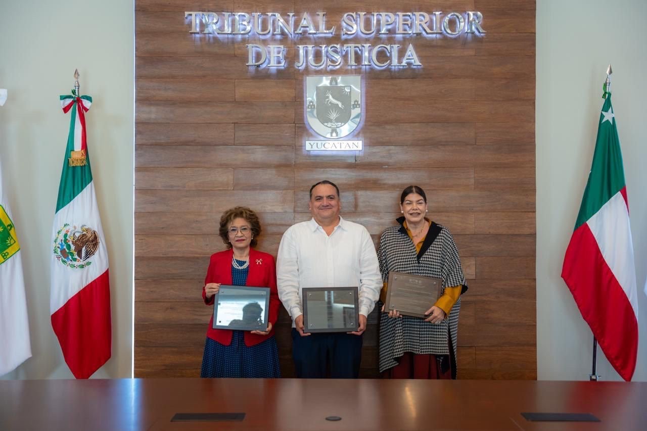 Mérida, Yucatán, 25 de febrero de 2026.- Por ser un ejemplo de vocación, carácter y profundo compromiso con la justicia, las magistradas Leticia del Socorro Cobá Magaña e Ingrid Priego Cárdenas, así como el magistrado José Rubén Ruiz Ramírez recibieron un reconocimiento por parte del pleno del Tribunal Superior de Justicia del Estado (TSJE) al concluir el período constitucional para el que fueron designados en el cargo.