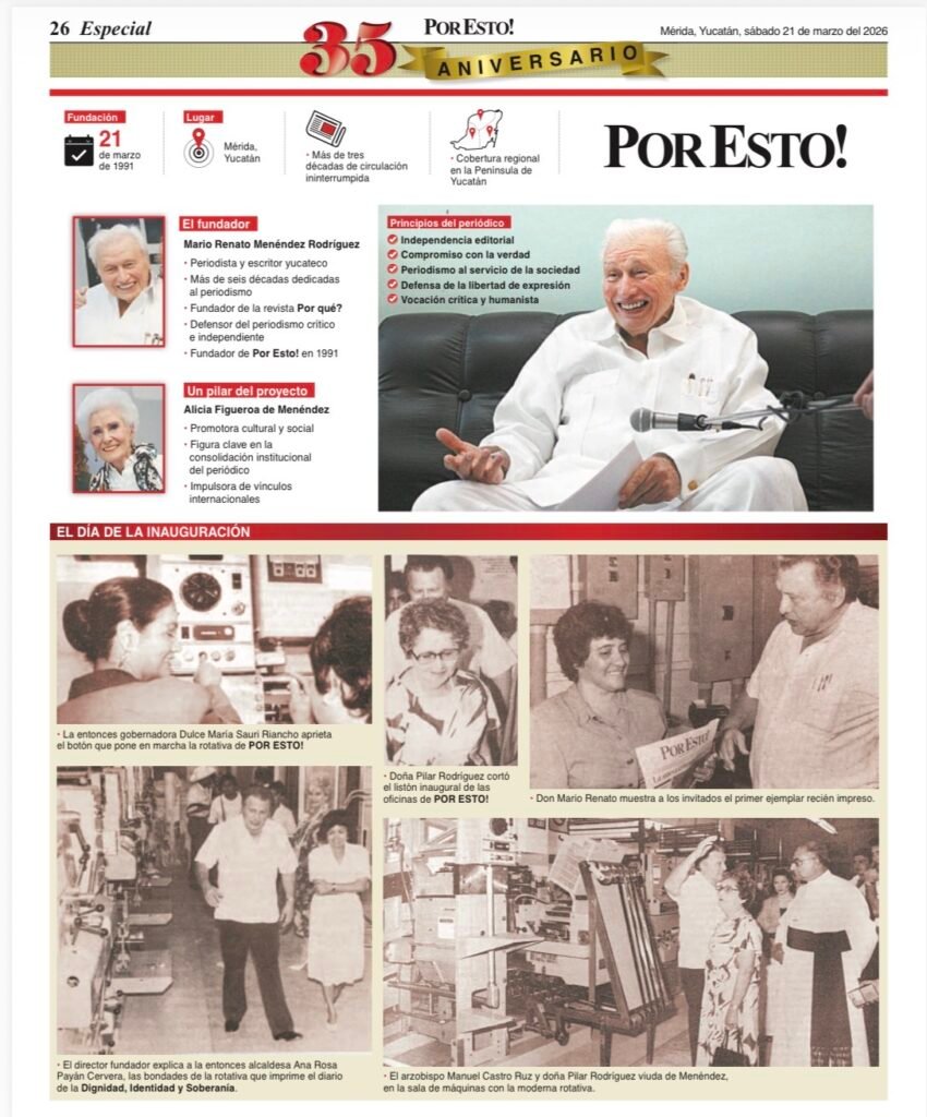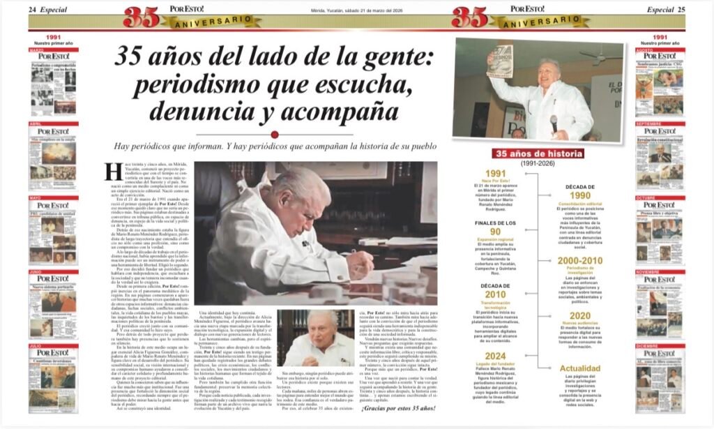Hoy, más que nunca, el país necesita medios que no se limiten a replicar discursos oficiales ni a seguir agendas dictadas desde el poder. México necesita medios que escuchen, que acompañen y que denuncien. Y es precisamente ahí donde la historia de Por Esto! adquiere relevancia. Fundado el 21 de marzo de 1991 en Mérida, Yucatán, Por Esto! nació con una misión clara: servir a la sociedad desde un periodismo crítico e independiente. Treinta y cinco años después, el periódico se ha consolidado como un referente en la Península de Yucatán, no solo por su cobertura regional, sino por su línea editorial firme y su cercanía con la gente.