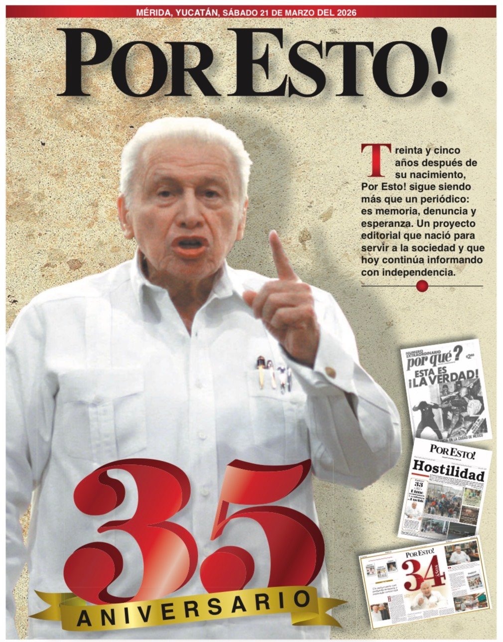 Hoy, más que nunca, el país necesita medios con identidad, con carácter y con compromiso social y Yucatán tiene en Por Esto! una historia viva de ello. Felicidades por 35 años haciendo periodismo con causa.