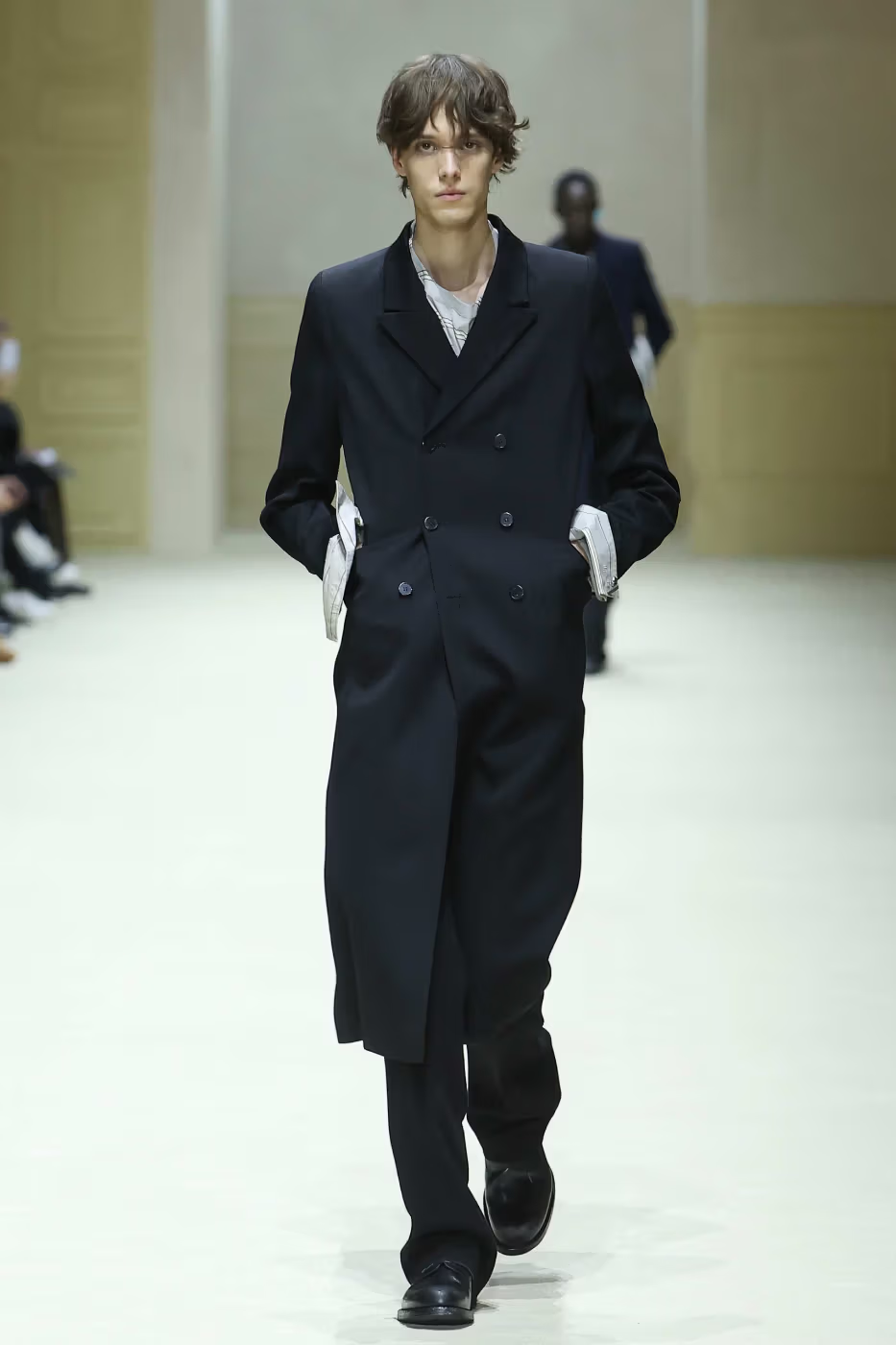 El concepto central de la colección se basó en lo que los diseñadores describieron como una “evolución sin borrado”, construyendo ideas nuevas que retoman ecos del pasado para darles sentido en el presente. Las siluetas alargadas y precisas manifestaron una mirada reflexiva sobre la forma y la postura, al mismo tiempo que reconfiguraron elementos clásicos de la moda masculina.