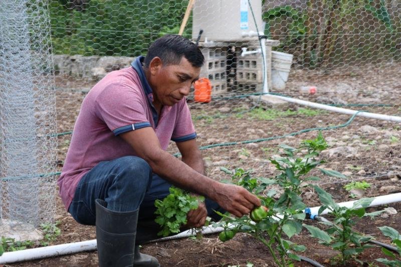 Con el apoyo recibido, Juan de la Cruz ha logrado cultivar tomate, chile xcatik, chile habanero, remolacha, colinabo, lechuga, plátano y maíz, entre otros cultivos, que contribuyen a una dieta más variada y nutritiva. Además, planea comercializar los excedentes a precios justos dentro de su comunidad, con lo que también busca fortalecer su economía familiar.