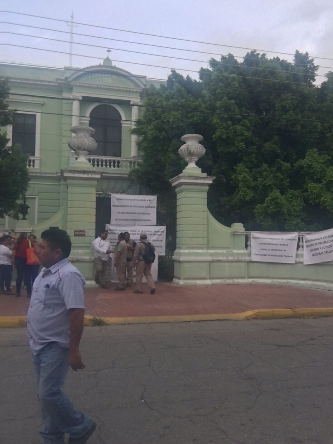 Mérida, Yucatán.– Trabajadores del área de vectores realizaron una protesta durante la madrugada de este martes y tomaron las instalaciones de la Secretaría de Salud de Yucatán, ubicadas en el barrio de Santiago.