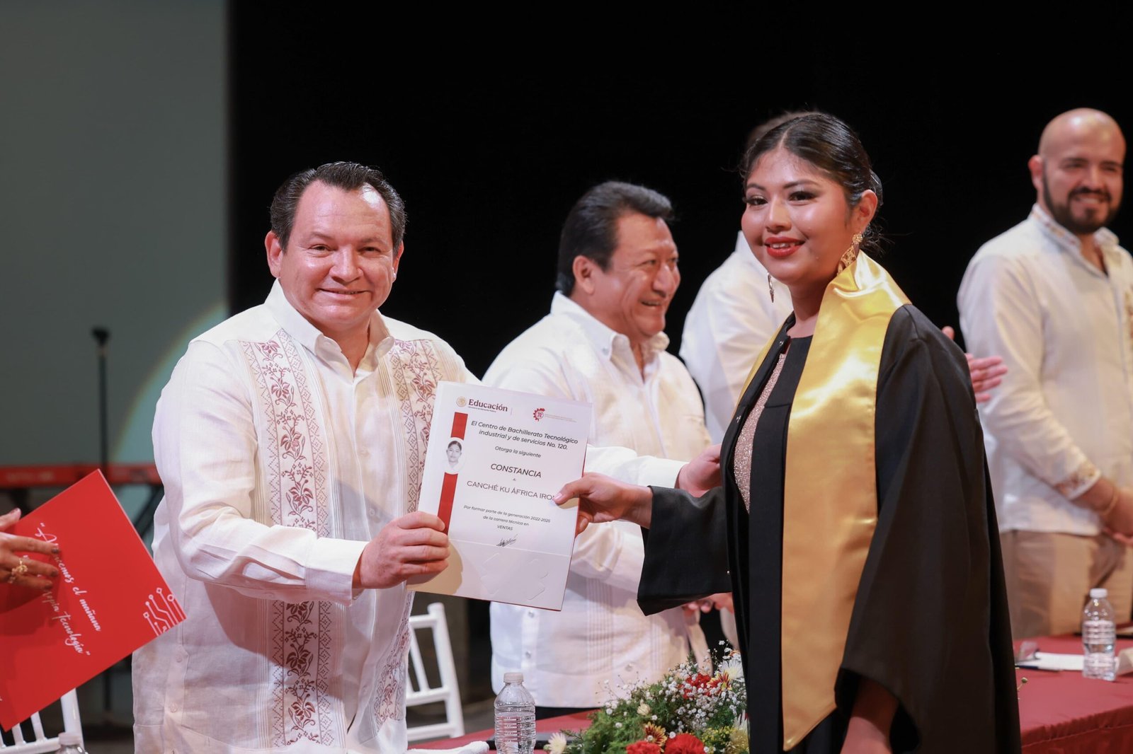 En el evento participaron Patricia Sofía Gutiérrez Dula, directora del Cbtis No. 120; Miguel Ángel Pech Estrella, subsecretario de Educación Media Superior de la Secretaría de Educación estatal; Humberto Augusto Contreras Chávez, comisionado responsable de la Dirección General de Educación Tecnológica Industrial (Dgeti) en Yucatán; y Mario Orlando Pavía Aguilar, supervisor de la Subsecretaría de Educación Media Superior.