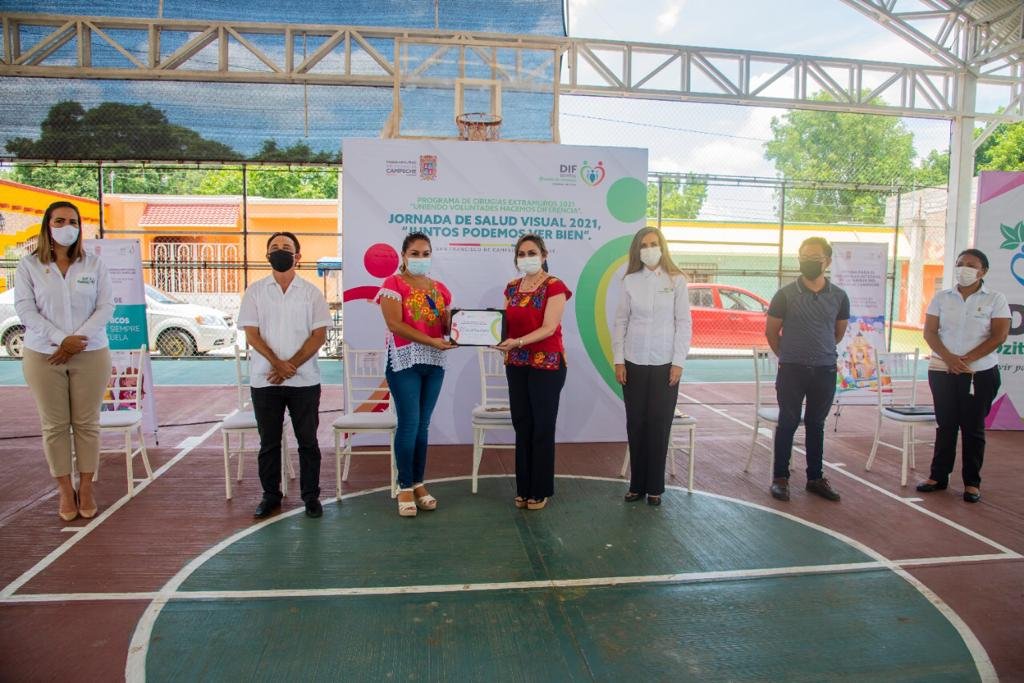 Posteriormente, en el municipio de Dzitbalché, Damas de Aysa, acompañada del presidente del comité municipal de ese lugar, José Carlos Sánchez Flores y su esposa la presidenta del SMDIF, Diana Lagunés de Sánchez, entregaron de manera simbólica lentes a beneficiarios de la campaña de salud visual 2021, acto que les permitirá llevar a cabo sus tareas cotidianas con seguridad.