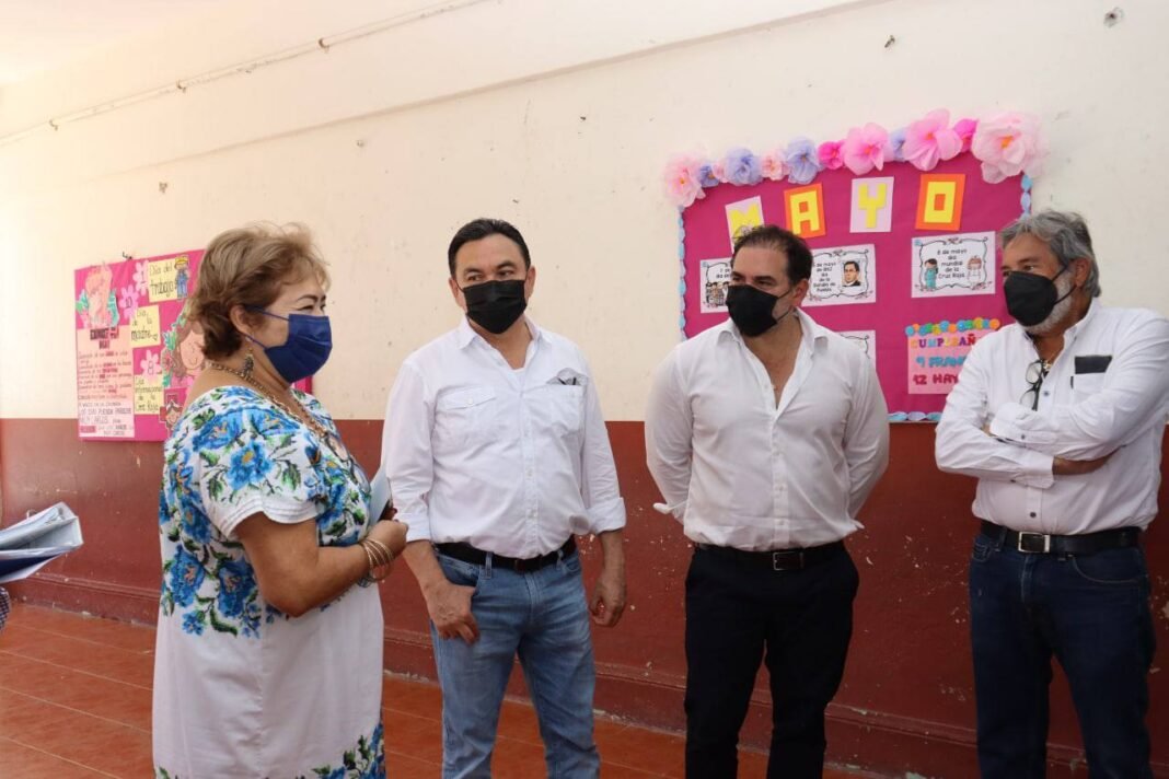 PROGRESO. – Diferentes trabajos se realizarán en la escuela “Maniobras Marítimas” y el preescolar “Juan Crisóstomo Cano y Cano”,  mencionó alcalde Julián Zacarías Curi, durante un recorrido realizado esta mañana por ambas escuelas, en donde acompañó al Secretario de Educación, Liborio Vidal Aguilar; y al diputado por el IX Distrito, Erik Rihani González.