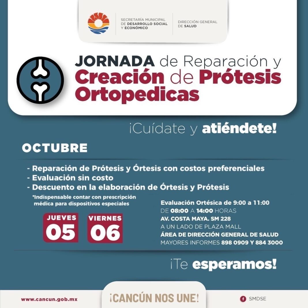 Además, para llevar este beneficio a más benitojuarenses, este viernes 06 de octubre también se contará con dichos servicios en las mismas instalaciones, en horario de 08:00 a 14:00 horas. Para ello se contará con atenciones en reparación de prótesis y órtesis con costos preferenciales, evaluación sin costo y descuento en elaboración de prótesis y órtesis.