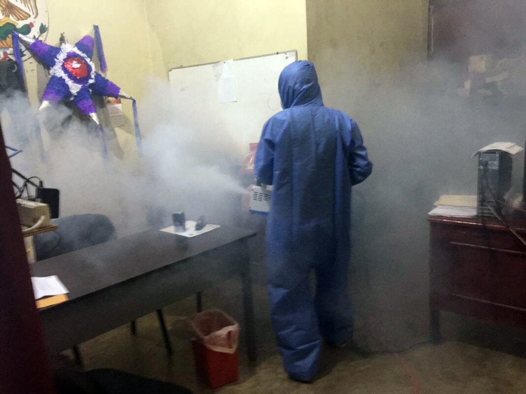 Las labores de las nebulizaciones lo realizan el personal de la Dirección de Salud del ayuntamiento, acciones que iniciaron desde el miércoles pasado en las oficinas del ubicados en el Centro de Desarrollo Comunitario (CDC).