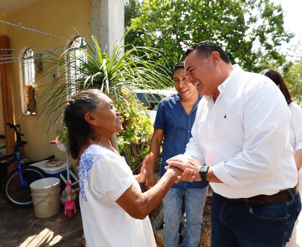 A su llegada a la comisaría de Yaxnic, el Alcalde visito previamente la casa de la señora Leobarda Chan Cimá, productora de abeja y beneficiaria del programa “Apoyos a Proyectos Productivos”.