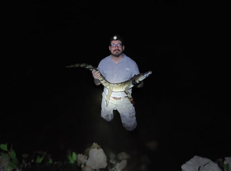 La intervención se realizó en respuesta a una solicitud del Ayuntamiento de Yobaín, luego de que pescadores y pobladores reportaran la presencia del reptil en un punto cercano a las áreas donde desovan las tortugas marinas. El operativo, encabezado por el Departamento de Conservación Ambiental de la SDS, se desarrolló durante la noche, momento en que los especialistas pudieron localizar al ejemplar y efectuar su captura con métodos controlados y sin riesgo para su integridad.