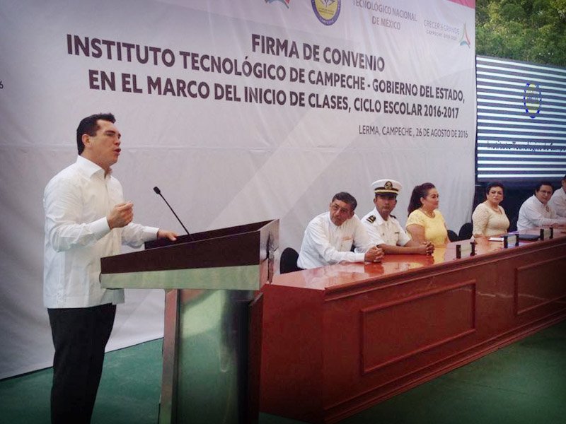 SAN FRANCISCO DE CAMPECHE.- Al firmar un convenio de cooperación con el Instituto Tecnológico de Campeche (ITC), durante el arranque del ciclo escolar 2016-2017, el gobernador Alejandro Moreno Cárdenas se comprometió públicamente con los estudiantes de mandarles a construirles una cancha techada.