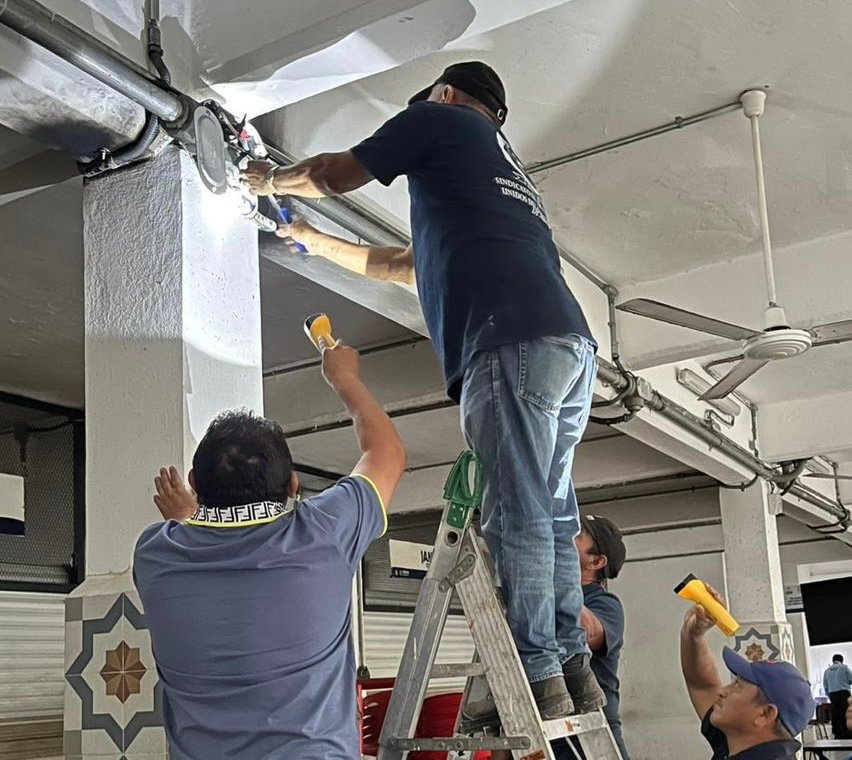 Mérida Yucatán a 23 de Marzo de 2026.- La seguridad de las personas que visitan los mercados y de sus locatarios es la prioridad del Ayuntamiento de Mérida, que informó la conclusión de los trabajos de reposición del cableado eléctrico en La Nueva Placita del Mercado Lucas de Gálvez, tras un corto circuito ocurrido el miércoles de la semana pasada.