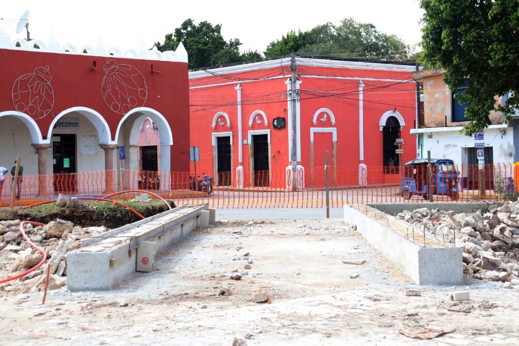 Oxkutzcab.-El alcalde Juan José Martín Fragoso, realizó un recorrido para constatar los avances de la reconstrucción y modernización del parque principal, obra que está programada entregar en febrero del 2023.