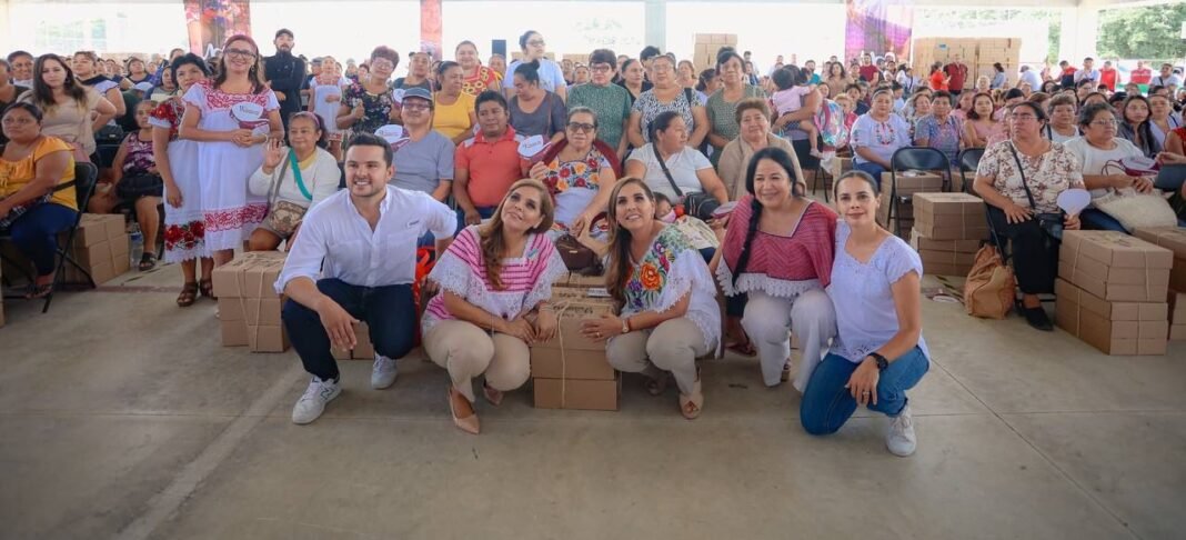 En el evento participaron también la presidenta honoraria del DIF Quintana Roo, Verónica Lezama Espinosa; el secretario estatal del Bienestar, Pablo Bustamante Beltrán; además de todas las beneficiarias que recibieron seis cajas cada una dependiendo de la actividad que realizan: bordado o urdido de hamaca, quienes expresaron su agradecimiento por dicho material para que emprendan su negocio.