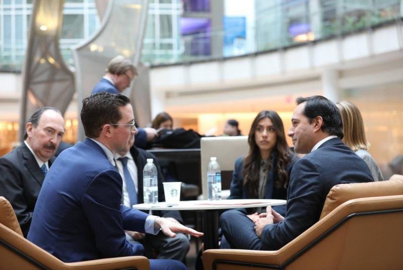De igual forma, el Gobernador también sostuvo un encuentro con miembros del Consejo de las Américas (COA, por sus siglas en inglés), organización empresarial que aglutina compañías de sectores como el bancario, finanzas, productos de consumidor, energía, fabricación, tecnología, transporte, entre otros, ante quienes expuso las ventajas competitivas de Yucatán, los proyectos estratégicos que se están desarrollando para continuar impulsando el desarrollo económico y la generación más y mejores empleos para los yucatecos.