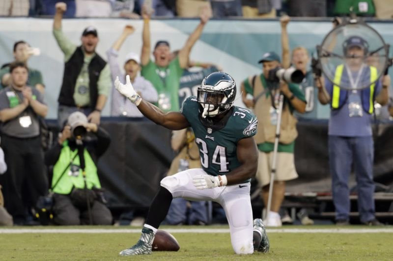 Wentz, novato que fue la segunda selección general del draft, conectó con Darren Sproles en una jugada de 73 yardas que concluyó en la zona de anotación. Lanzó un pase de 12 yardas a Jordan Matthews, para otro touchdown.