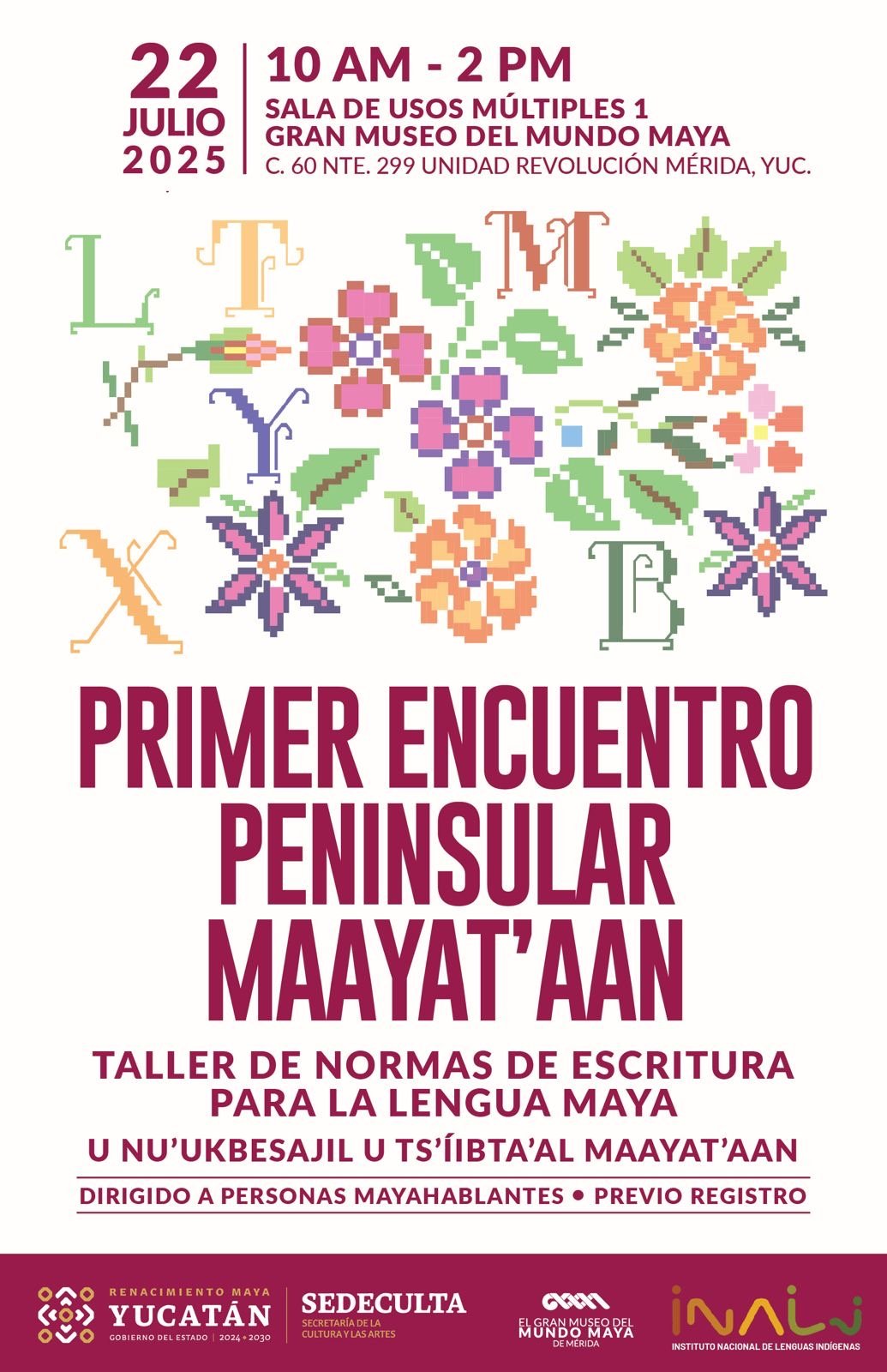 El taller impartido por la Dirección de Museos y Patrimonio de la Secretaría de la Cultura y las Artes (Sedeculta) será además el primer paso para la creación del Consejo Peninsular para la Maayat’aan (Lengua Maya) que, con el esfuerzo coordinado de los Gobiernos de Yucatán, Campeche y Quintana Roo, trabajará en la promoción, fortalecimiento y revaloración de esta lengua originaria entre la población de las tres entidades.