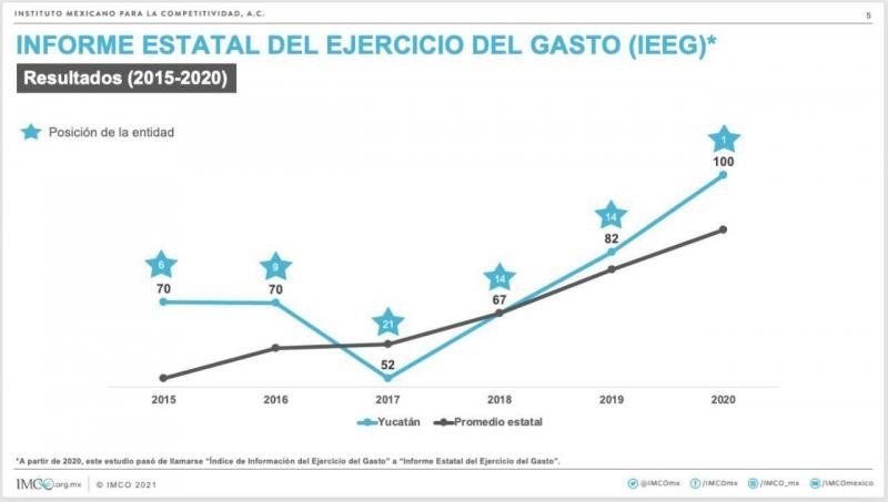 El estado obtuvo 100 puntos en el Informe Estatal del Ejercicio del Gasto (IEEG) 2021 del IMCO, resultado de los esfuerzos de la administración del Gobernador Mauricio Vila Dosal en materia de transparencia.